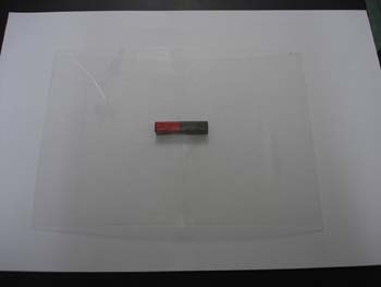 @ まず、画用紙の上に磁石を置き、その上に透明シートをかぶせる。