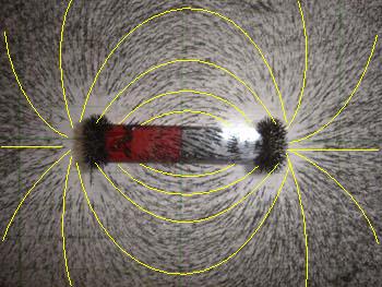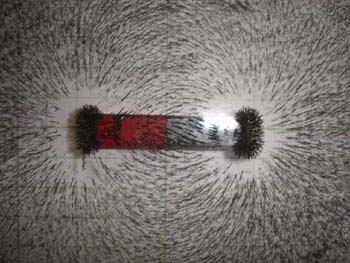 棒磁石のまわりの砂鉄が模様になっているのがわかりますか?