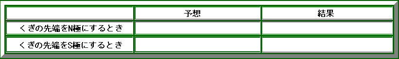 実験結果がわかりやすいように、下のような表に自分でまとめてみましょう。